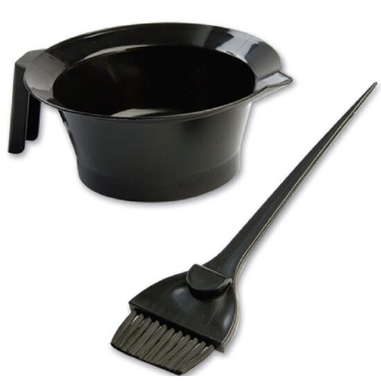 Setul pentru vopsit părul include o pensulă cu peri sintetici pentru aplicarea precisă a vopselei și un bol din plastic rezistent, ideal pentru amestecarea vopselei. Pensula are un mâner ergonomic și un vârf pentru separarea șuvițelor, iar bolul este stabil și ușor de folosit.